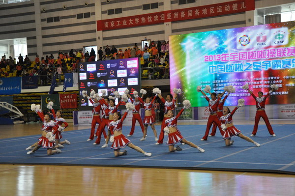 11月26日至29日,全国啦啦操联赛总决赛暨中国啦啦之星争霸赛在南京工业大学举行。本次总决赛由国家体育总局体操管理中心、中国大学生体育协会、中国中学生体育协会主办,南京工业大学、全国啦啦操竞赛委员会承办,参赛选手达到史无前例的4000多名,204支队伍参赛。其中大学组包括武汉体育学院、成都体育学院、广州体育学院、中央民族大学、上海财经大学、沈阳大学、广西大学等近70所高校,一千多名大学生运动员参加了本次赛事。