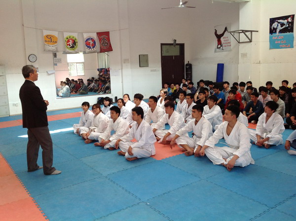 报告会由体育部主任杨斌主持,同时参加报告会的还有体育部部分教师、校空手道队员和广大武术爱好者。