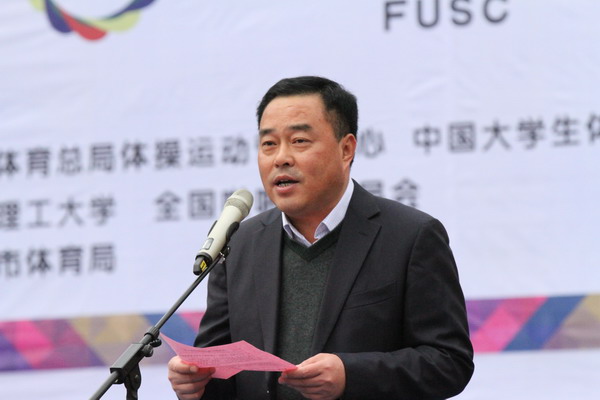 颜事龙致辞并宣布比赛开幕。他在致辞中指出,安徽理工大学承办此次国家级赛事,能够“以操会友”,喜迎来自省内外的众多领导、嘉宾和朋友,展示学校体育工作成绩和办学成果,全校师生倍感高兴。他强调,体育是教育的有机组成部分,是高等学校精神文明建设的重要载体。长期以来,学校高度重视体育工作,在加强体育教学的同时,积极开展竞技体育和全民健身活动,很好地发挥了体育的育人功能,师生在国内外的多个赛事中取得优异成绩,展示了学校体育工作的丰硕成果,也提高了学校的知名度。