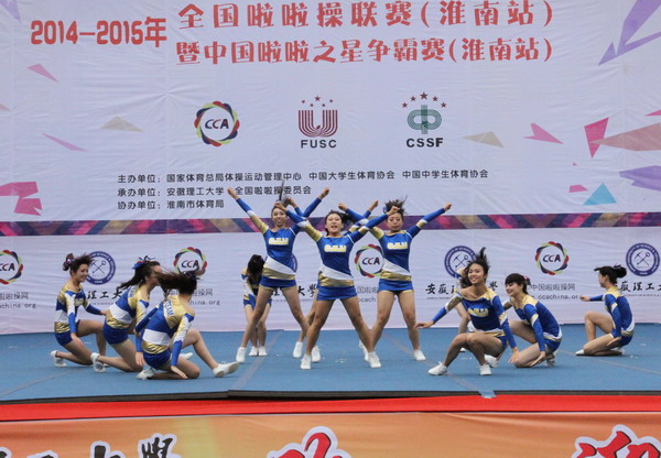 11月8日至9日,由国家体育总局体操运动管理中心、中国大学生体育协会、中国中学生体育协会共同主办,安徽理工大学及全国啦啦操委员会承办的2014-2015年全国啦啦操联赛(淮南站)暨中国啦啦操之星争霸赛(淮南站)在我校正式开赛。本次赛事共有来自安徽和周边省市的60支代表队1186名啦啦操选手参赛,我校获得优异成绩。