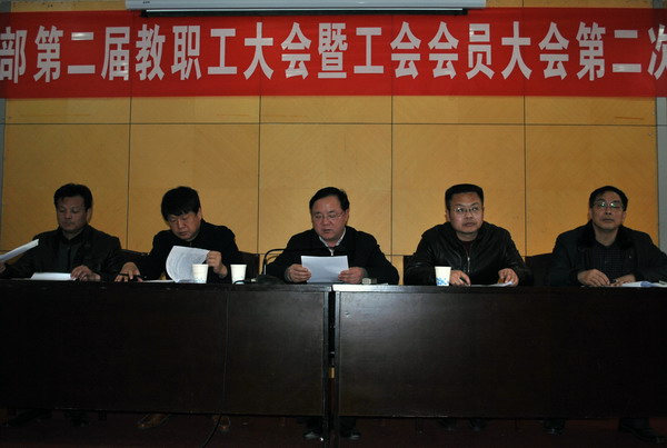最后大会号召全体教职工按照《工作报告》提出的任务和要求,进一步解放思想,攻坚克难,不断深化教育教学改革,为体育部工作再上新台阶而努力奋斗。