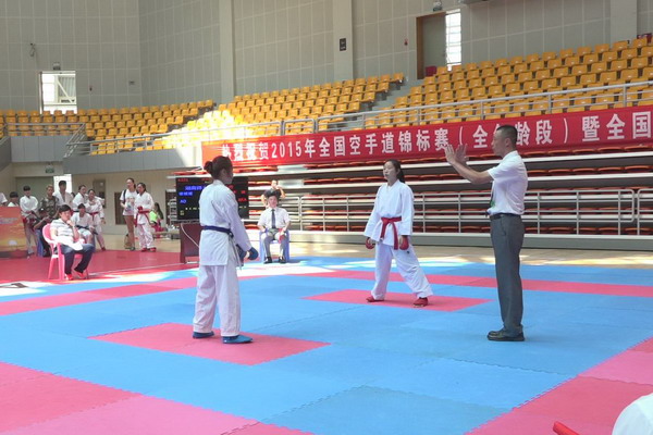 8月21日至23日,由国家体育总局拳击跆拳道运动管理中心、中国空手道协会主办,娄底市文体广新局承办的2015年全国空手道锦标赛(全年龄段)在湖南省娄底市体育中心体育馆举办。来自中国国家队、香港特别行政区、各省市的46支代表队600多名空手道全年龄段选手参赛。