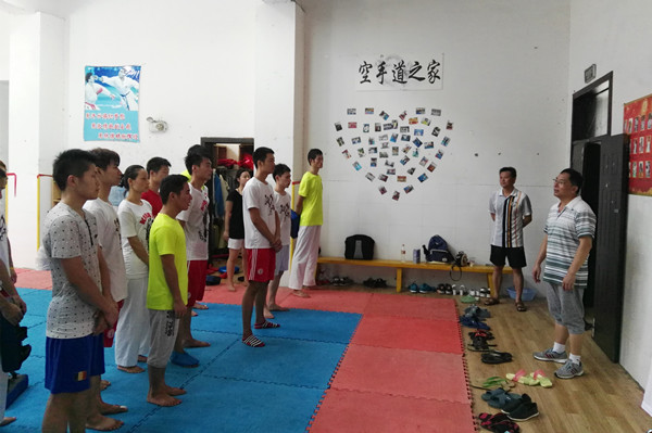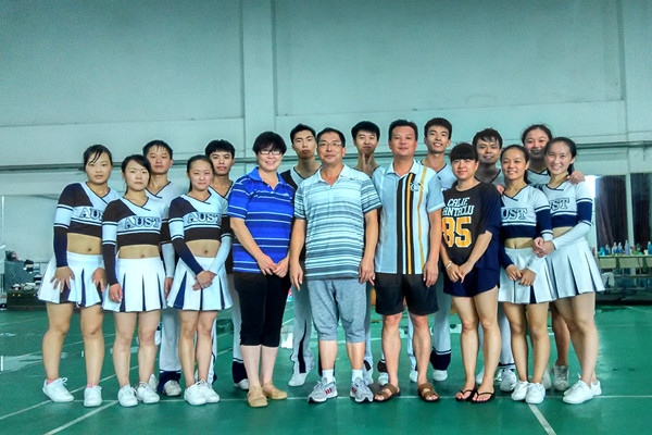 8月22日,体育部书记、主任杨斌与体育部副主任邹瑞,到北区看望正在暑期集训的校空手道队和即将出征2016年全国大学生啦啦操锦标赛的校啦啦操队师生。