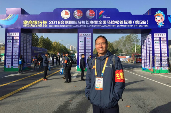 11月12日,由中国田径协会、安徽省体育局、合肥市人民政府主办的“徽商银行杯”2016合肥国际马拉松赛暨全国马拉松锦标赛(第5站)在合肥市举行。合肥国际马拉松是中国田径协会评定的银牌赛事,本次比赛共计有来自二十余个国家26000多名运动员参加比赛。我校体育部杨春老师受大会组委会选派担任本次马拉松锦标赛主裁判。