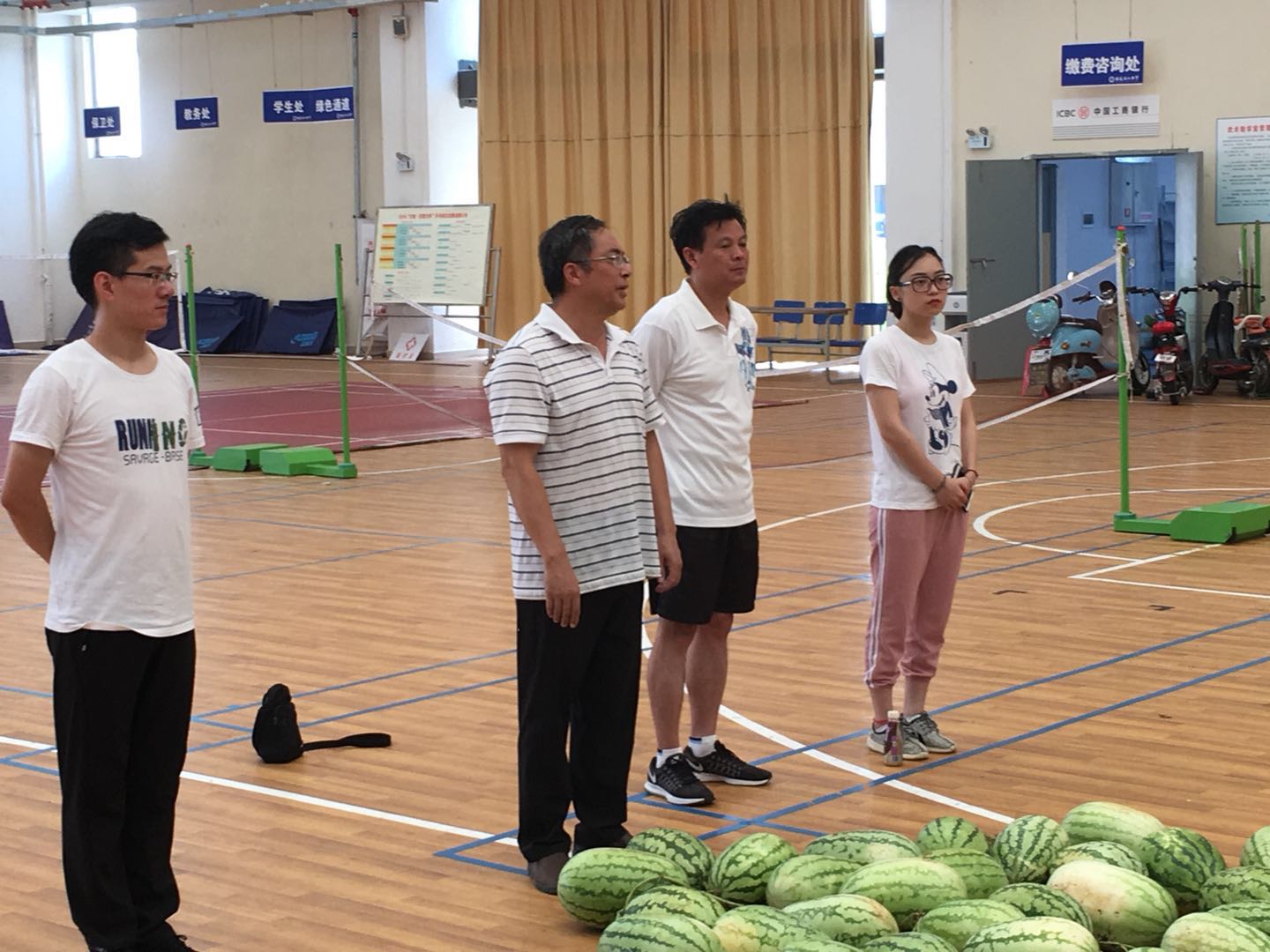 8月7日,体育部书记、主任杨斌与体育部副主任邹瑞,看望慰问为备战国家级赛事、省运动会赛事,暑期留校集训的校空手道队、啦啦操队、体育舞蹈队、健美操队和田径队教练员及运动员。