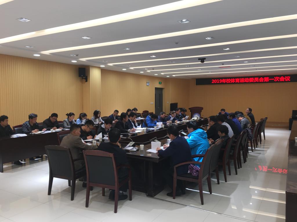 4月9日下午,2019年校体育运动委员会第一次会议在行政楼二楼西会议室召开。校体育运动委员会主任、副校长宫能平主持会议。校体育运动委员会全体成员参加了会议。会议总结了2018年学校体育工作,布置了2019年学校参加和开展的重要体育赛事、活动,重点部署了第三十九届校运动会的相关工作。