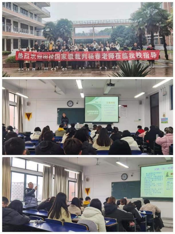 为全面普及田径运动,进一步提高大学生对田径竞赛规则与裁判方法的了解和掌握,同时也为大学生能够晋升田径裁判员等级提供专题辅导,应安徽工程大学体育学院和皖江学院体育学院邀请,11月28日至29日,我校体育部杨春老师分别为两校学生开展了田径竞赛规则和裁判法专题讲座。整个讲座从视频案例、最新竞赛规则、田径场地与器材等方面全面进行了培训和解读。整场讲座学生认真听讲,踊跃发言,气氛活跃。