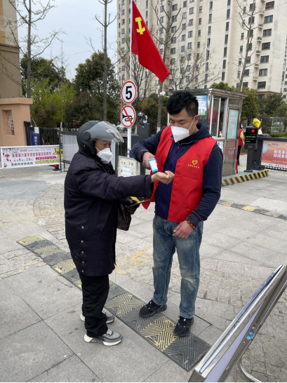 给进入人员测量体温和宣讲防护事项
