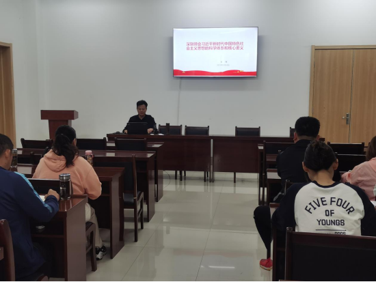 5月10日上午,体育部在至诚体育场A105会议室开展主题教育专题党课学习,体育部党总支书记、主任邹瑞结合主题教育的学习内容,以“深刻领会习近平新时代中国特色社会主义思想的科学体系和核心要义”为题,面向体育部全体党员讲授党课。