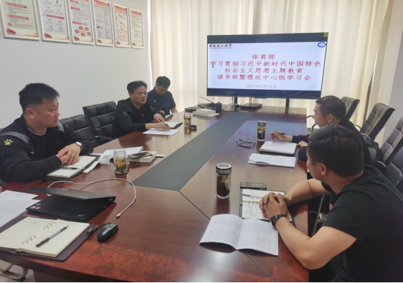 5月12日上午,体育部党总支学习贯彻习近平新时代中国特色社会主义思想主题教育读书班暨理论学习中心组(扩大)学习会在行政楼710会议室召开。会议由体育部党总支书记邹瑞主持。党总支委员和各党支部书记参加学习会。