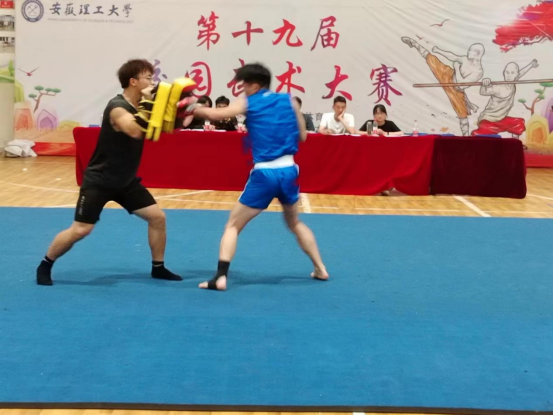 为推动武术进校园,丰富校园体育文化,传承和弘扬中华优秀传统文化,提高学生身体素质,培养学生集体荣誉感,根据2023年安徽理工大学竞赛计划要求,由体育部主办、校武术协会协办的安徽理工大学第十九届校园武术大赛于6月18日下午在自强体育馆开赛,共有近40名运动员参加了拳术、太极拳、器械、散打、跆拳道品势五个项目的比赛。