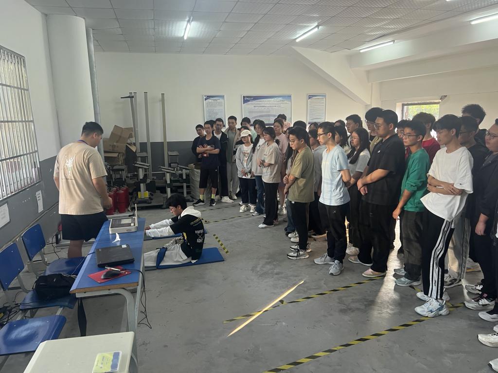 活动中,体质测试中心主任刘禹对被抽中的大一、大二和大三学生强调了体质健康抽检工作的重要性,要求认真对待本次体质健康抽检工作;刘禹老师、张春辉老师、胡德堂老师和王玮老师分别介绍了室内外体测各项目要求和注意事项,并安排和指导学生模拟演练了室内外测试项目。本次演练对学生身体素质、心理素质同时进行了一次检阅,为迎接安徽省教育厅2023年体质健康抽检工作奠定了坚实基础。