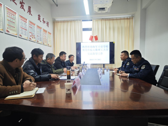 11月30日下午,中国人民解放军海军士官学校基层管理系主任曹斌一行来体育部开展调研交流,体育部党总支书记、主任邹瑞热情接待了来宾,并举行座谈交流。交流会由邹瑞主持。