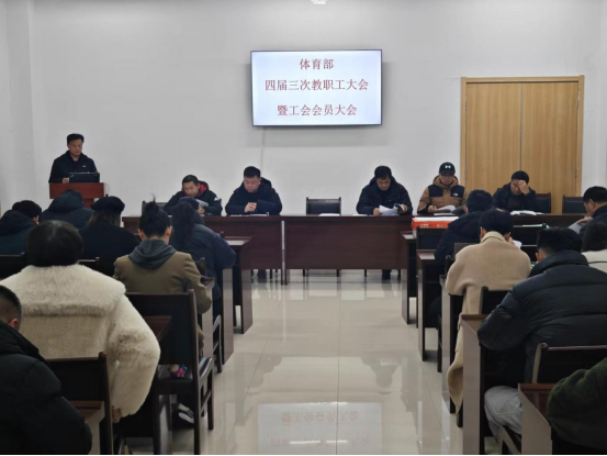 3月6日下午,体育部第四届三次教职工大会暨工会会员大会在至诚体育场A105会议室召开。大会由体育部副主任韩惠主持,全体教职工参加了大会。