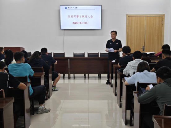 为扎实开展深入贯彻中央八项规定精神学习教育,进一步巩固深化党纪学习教育成果,6月10日上午,体育部党总支在至诚体育场A105会议室召开深入贯彻中央八项规定精神学习教育警示教育会。会议由体育部党总支书记邹瑞主持。