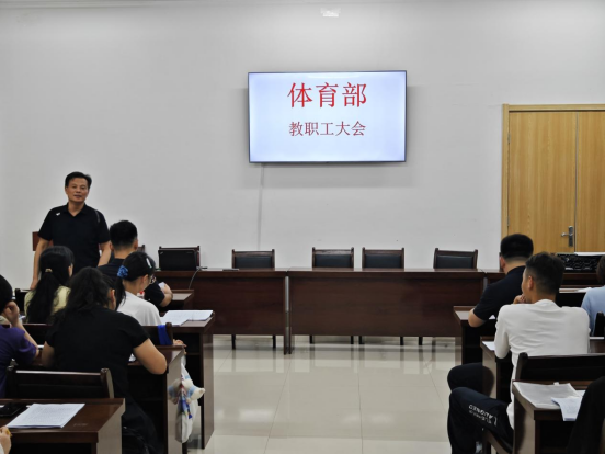 9月5日下午,体育部在至诚体育场A105会议室召开新学期第一次全体教职工大会,安排新学期工作任务。会议由体育部党总支书记、主任邹瑞主持,副主任杨继宏、韩惠分别作了相关要求,全体教职工参加了会议。