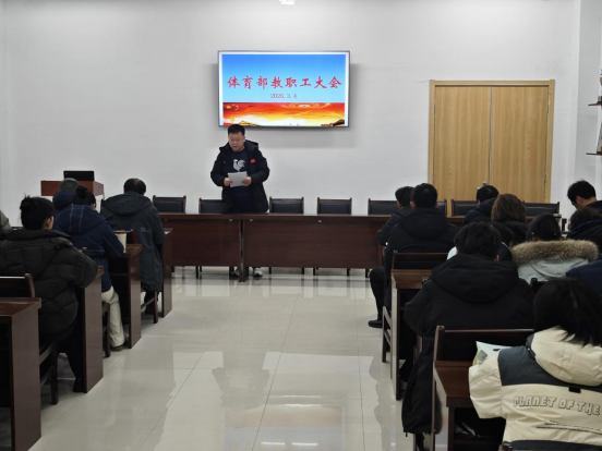 3月4日下午,体育部在至诚体育场A105会议室召开新学期全体教职工大会。会议由体育部副主任韩惠主持,全体教职工参加了大会。