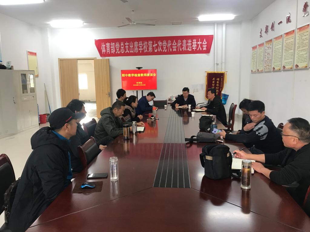 11月22日下午,在至诚体育场A104室,校纪委书记周旭出席体育部期中教学检查教师座谈会。会议由体育部副主任(主持工作)邹瑞主持。