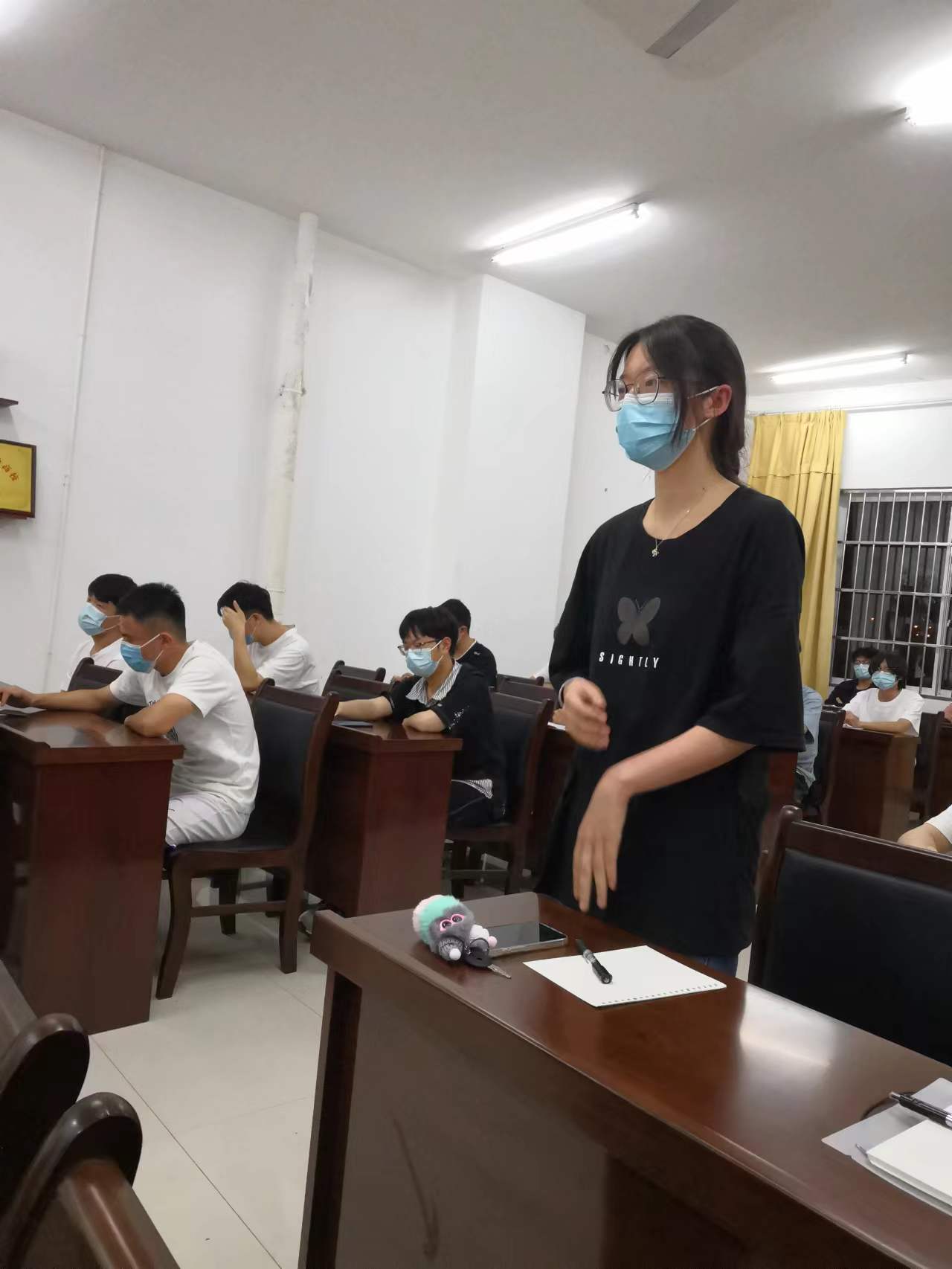 会上,韩惠介绍了本学期的教学安排:分三个阶段,一、开学初进行的三周室外教学活动;二、由于疫情原因,开展的线上教学课程(3月28日至5月16日);三、恢复线下教学后的体育课程安排。其中,解释和说明线上体育课程的要求和形式,室内场馆关闭的原因,教学用品、器材不能取出的原因,同时也介绍了线上教学督导检查中发现的问题。并对线上教学的形式和开展的意义进行阐述和说明。其次,谈到关于宥马运动在实施过程中存在的不足和采取的一些改进措施,同时对宥马运动中违规的行为和处罚进行说明。最后,探讨疫情期间学校的各方面应对处理情况以及期末考试的安排和标准,让学生了解学校在处理疫情时所做的努力,对学生进行育人教育,号召全体学生传播正能量,为学校争创“双一流”大学贡献自己的力量。