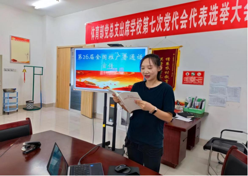 “体育承载着国家强盛、民族振兴的梦想。体育强则中国强……”,胡德堂在交流讨论结束后组织开展经典诵读比赛,以《深入学习习近平关于体育的重要论述》为诵读材料,组织青年教师使用普通话进行诵读,既有力提升了普通话的宣传效果,又深化了大家对体育工作重要性的认识,比赛现场气氛热烈。大家纷纷表示,要在今后的工作生活中自觉学习普通话、主动使用普通话、大力推广普通话。