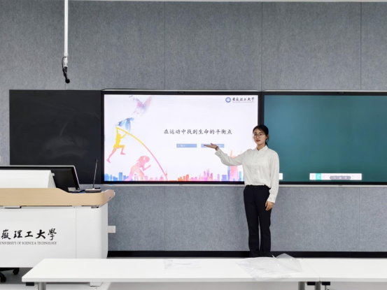 决赛中,体育部杜春燕老师以“在运动中找到生命的平衡点”为课堂主题,给学生带来了一堂生动有趣的体育理论课,与学生一起从体育塑造完整人格、运动失衡的三大陷阱和科学运动的黄金法则三个角度探讨科学运动这一话题,帮助学生树立正确的运动方式,现场教学思路清晰、表达流畅、与学生互动性较好。经过精彩的教学展示和紧张的角逐,最终,杜春燕老师荣获青年教师教学基本功竞赛综合二等奖。