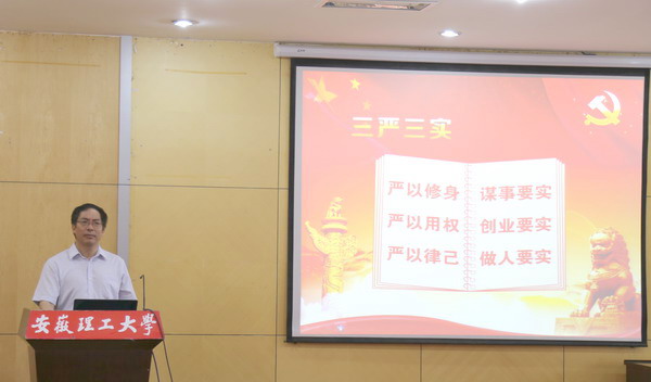 杨斌对“三严三实”专题教育的时代背景、深刻内涵及重大意义,“不严不实”的基本表现及解决的办法和途径,如何践行“三严三实”等进行了深入的阐述和解读。他强调,“三严三实”的核心要义是对党忠诚、个人干净、敢于担当。践行“三严三实”必须聚焦忠诚、干净、担当,找准“不严不实”突出问题,深挖根源,对标整改,真正让“三严三实”成为党员干部的修身之本、为政之道、成事之要。