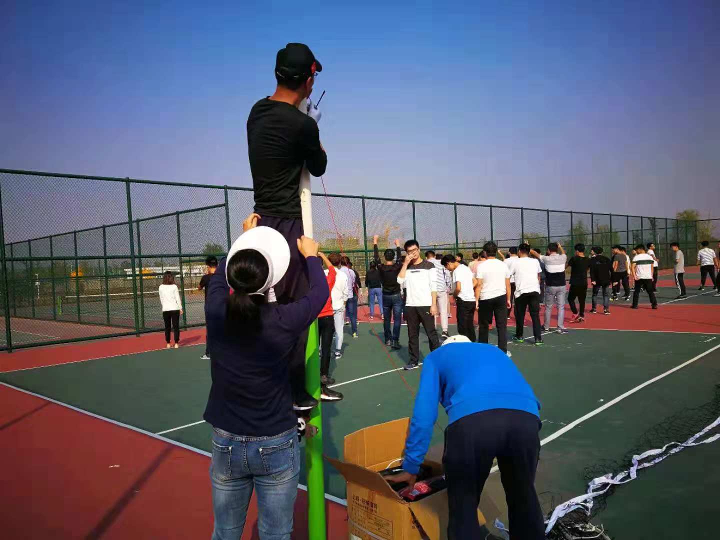 根据支部近期工作计划安排,10月24日下午,在体育部书记、主任杨斌的带领下,第一党支部党员来到信义体育场排球场地,更换损坏的排球网。