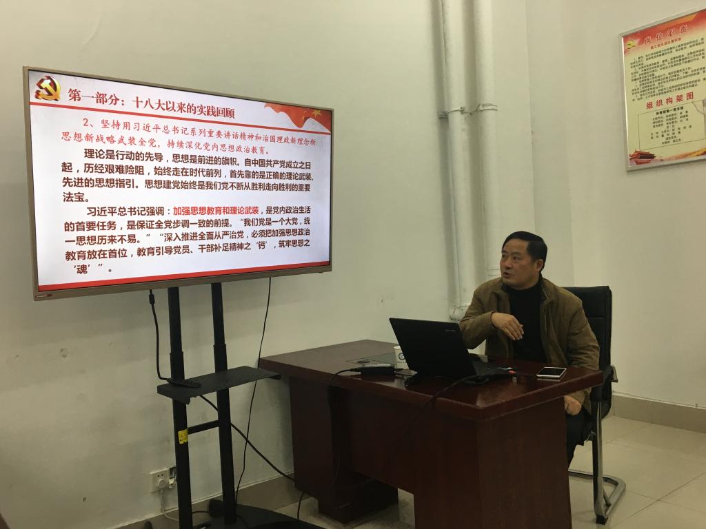 娄志勇以《学习贯彻党的十九大精神 推动基层建设全面进步全面过硬》为题对全体党员展开培训。他围绕党的十八大以来党中央坚持抓基层强基础,把全面从严治党向基层延伸的实践回顾;党的十九大对加强基层组织建设提出的新要求;全面贯彻落实党的十九大精神,扎实推进新时代基层组织建设等三个方面,结合党建实例,深入浅出地解读了党中央对基层党组织建设的新目标、新定位、新要求。党课深入浅出,通俗易懂,有很强的思想性、指导性和针对性,使学员们受益匪浅、深受教育。