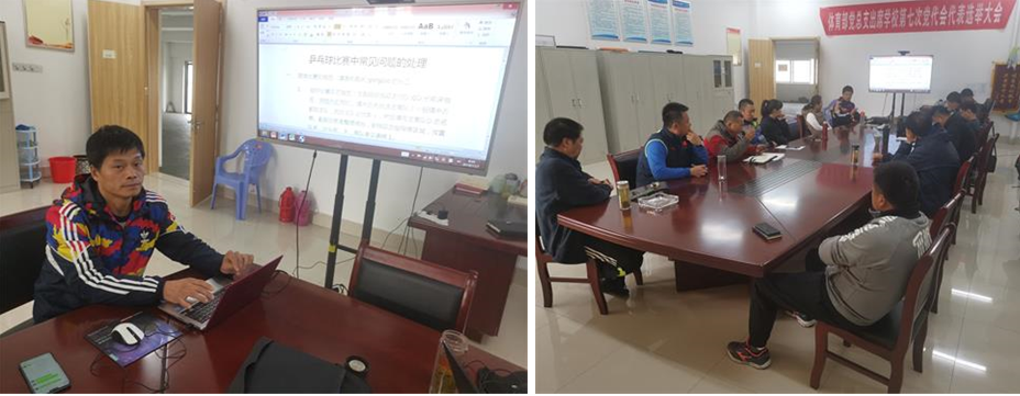会上,杨春带领大家共同学习了形势政策宣讲教材《党中央治国理政新理念新思想新战略》中的“把培育和弘扬社会主义核心价值观作为凝魂聚气、强基固本的基础工程”和“坚持全面从严治党、依规治党”两个部分。随后,教学秘书王玮对期中教学检查工作作了布置,王贺文老师为大家讲解了乒乓球竞赛规则及裁判方法。最后,杨春对本学期教研室督导组工作和教师看课事宜作了部署和要求。
