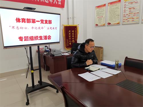 根据《关于召开“不忘初心、牢记使命”主题教育基层党组织专题组织生活会和开展民主评议党员的通知》(校教组发﹝2019﹞10号)要求,12月4日上午,第一党支部在至诚体育场A104室召开“不忘初心、牢记使命”主题教育专题组织生活会和民主评议党员大会。会议由第一党支部书记杨春主持。