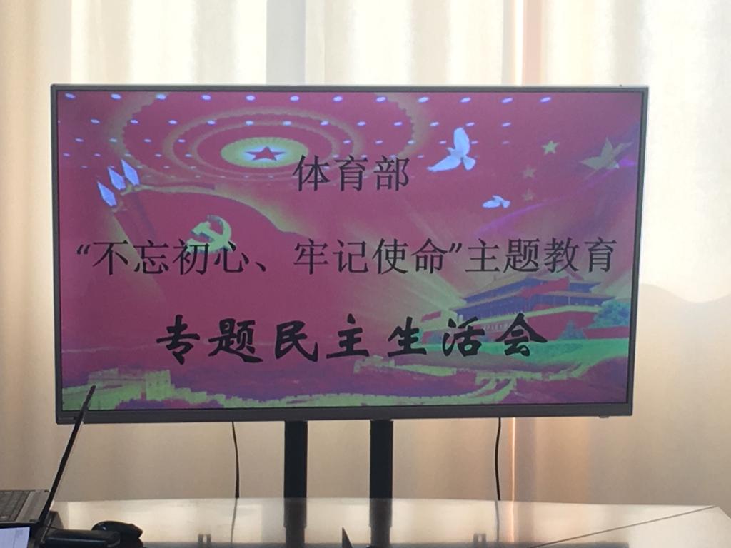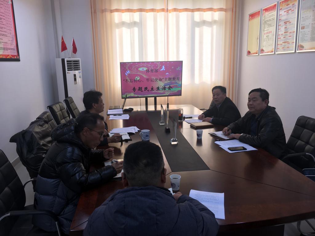 12月9日下午,体育部党总支在崇智楼A109会议室召开体育部党总支“不忘初心、牢记使命”主题教育专题民主生活会。校党委常委、副校长宫能平到会指导,保卫处处长方运纪陪同。会议由体育部副主任(主持工作)邹瑞主持。体育部党总支委员参加了会议。