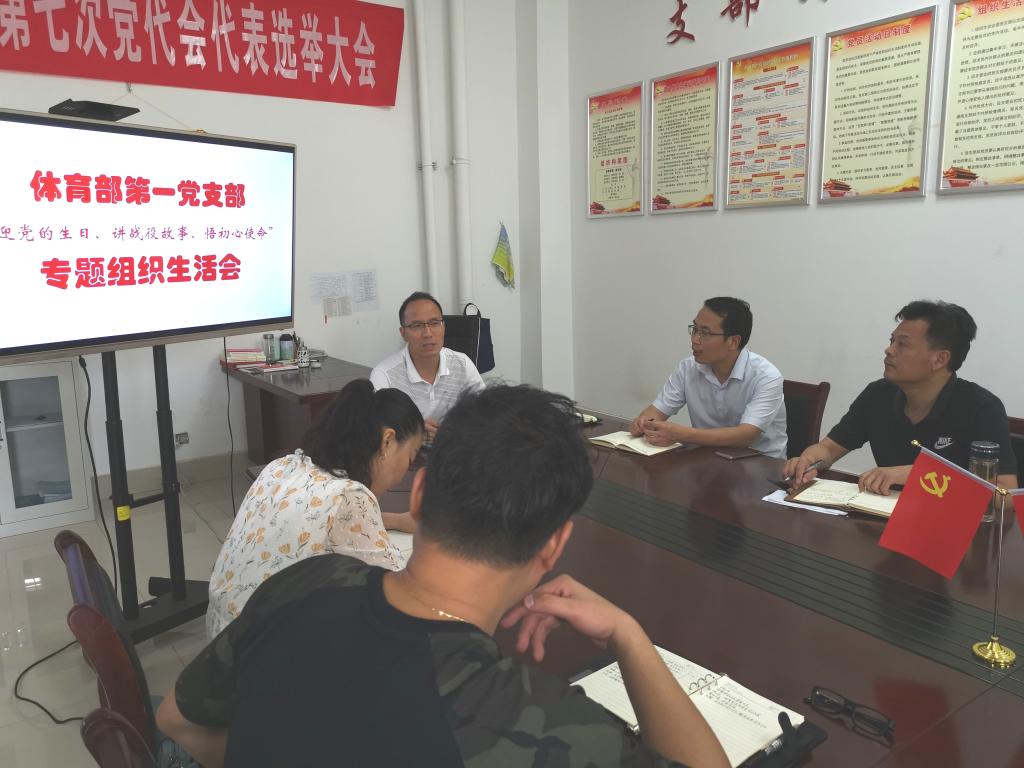 按照《关于召开2020年上半年党支部“迎党的生日、讲战‘疫’故事、悟初心使命”专题组织生活会的通知》(校党政办﹝2020﹞71号)精神要求,6月28日下午,第一党支部在至诚体育场A104室召开了专题组织生活会。会议由第一党支部书记杨春主持。校党委组织部副部长涂有胜莅临督导。支部全体党员参加会议。