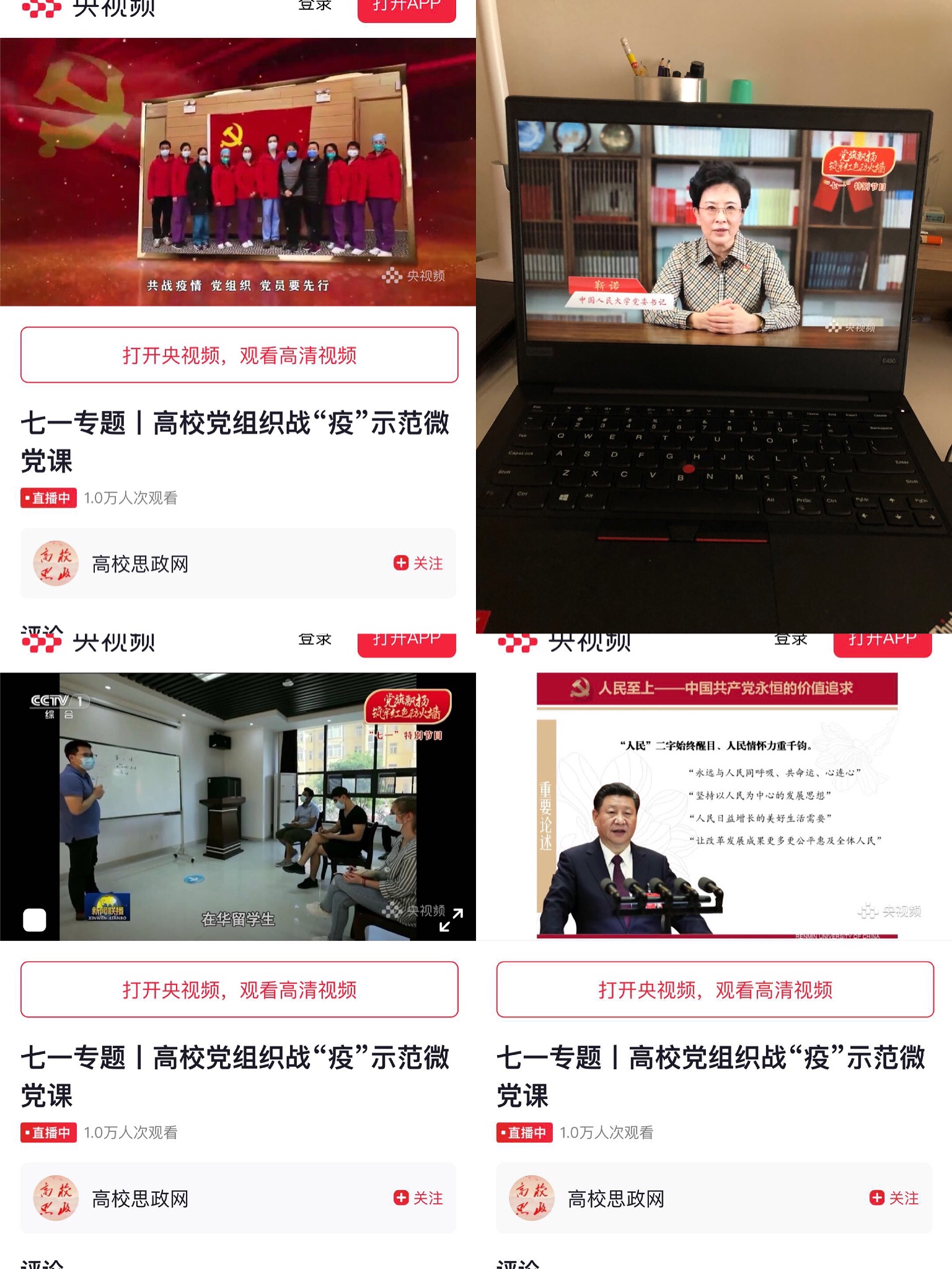7月1日上午9点,第二党支部组织全体党员收看了教育部思想政治工作司指导高校党组织战“疫”示范微党课“七一”特别节目。