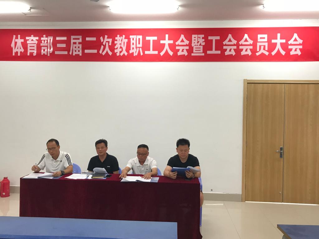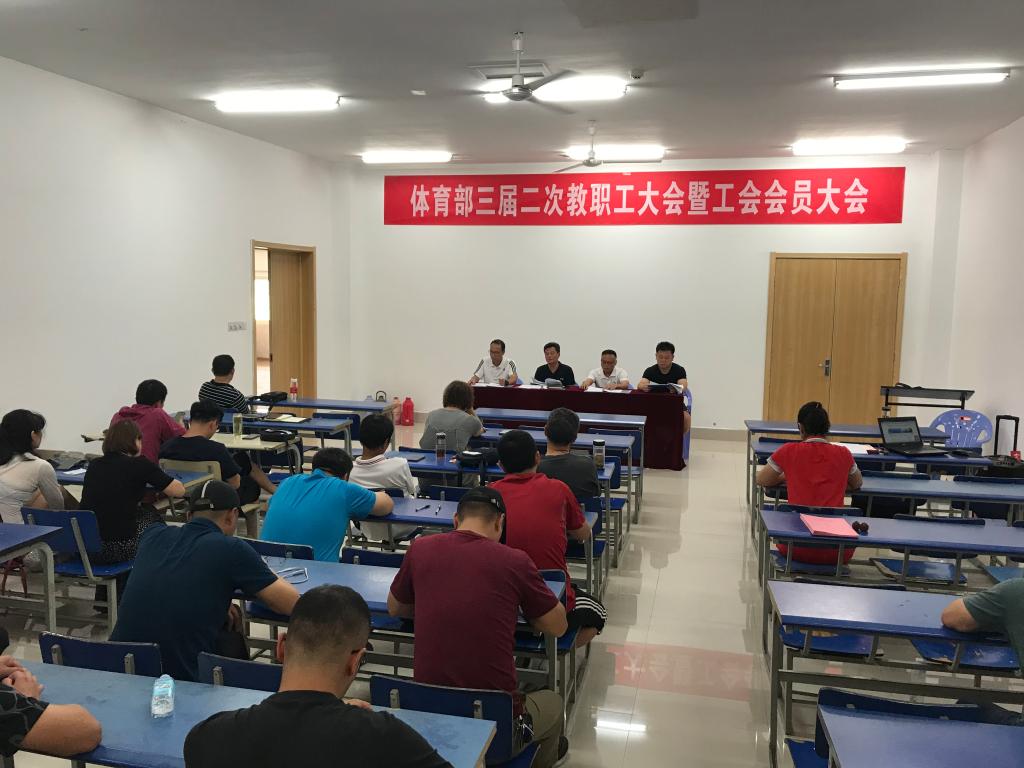 7月13日,体育部三届二次教职工大会暨工会会员大会在至诚体育场A105会议室召开。大会由体育部副主任(主持工作)邹瑞主持,全体教职工参加了大会。