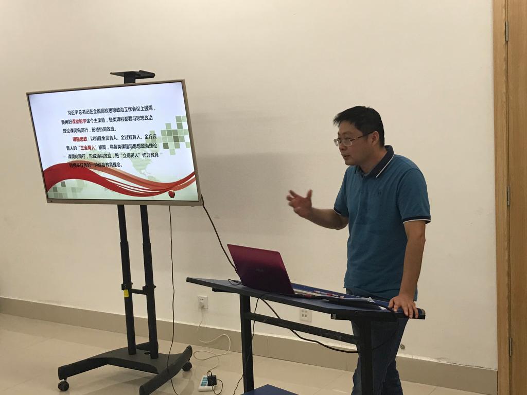 8月27日下午,体育部在至诚体育场A105会议室举办专题讲座,邀请马克思主义学院岳柏冰副教授做客“百川大讲堂”,作了题为《挖掘体育课程蕴含的“思政元素”,提升体育教学的有效性》的专题辅导报告。报告会由体育部副主任(主持工作)邹瑞主持。体育部全体教师聆听了报告会。