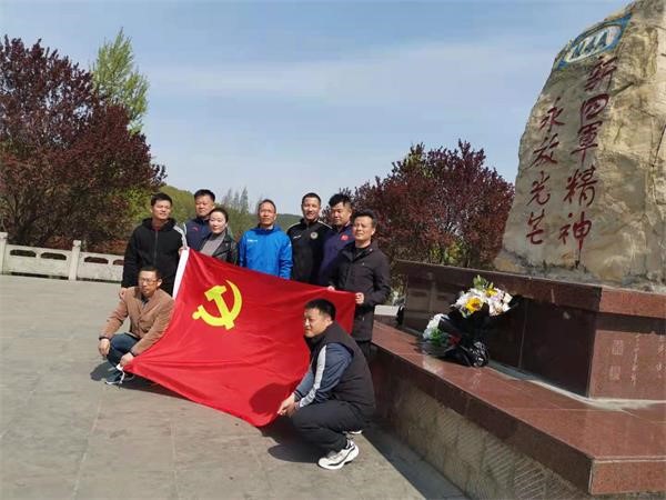 缅怀英烈祭忠魂,抚今追昔思奋进。为缅怀革命先烈,全面引导党员教师加强爱国主义情怀,不断增强新时代教师使命感,积极传承红色基因,4月5日上午,体育部第一党支部组织全体党员赴爱国主义教育基地上窑新四军纪念林开展缅怀先烈主题党日活动。全体党员怀着崇高敬意缓步走向纪念碑,向长眠于此的革命先烈敬献了花篮。通过认真阅读碑文和题词,深入了解了新四军的光辉历史,对英烈们的光辉事迹充满了深深的敬意。在“新四军精神永放光芒”主碑前,同志们肃立注视着鲜红的党旗,重温了入党誓词。