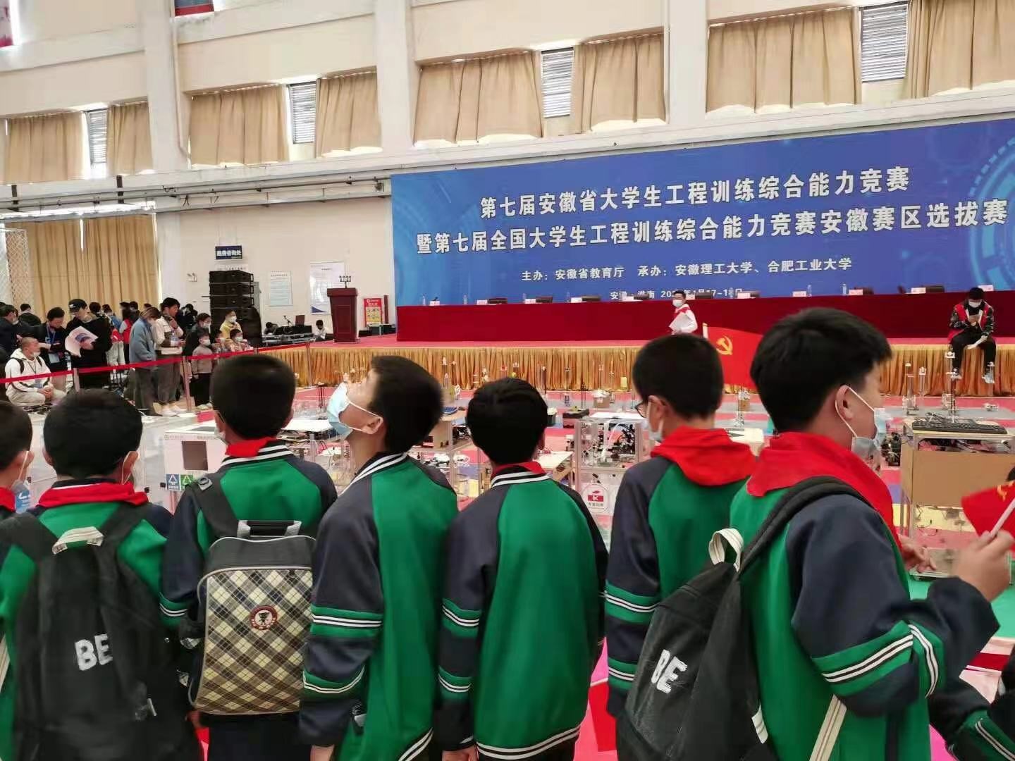 会后,第二党支部书记赵宝虎及党员志愿者带领淮南市大通区洛河镇省级农村留守儿童示范基地的30多名留守儿童在校开展游学活动。首先参观了厚德馆,武术协会的学生向他们介绍了协会发展情况并现场进行了表演,激发了孩子们对传统文化的兴趣。接着观摩了火药文化展示,火药纹画社的学生向小朋友介绍了火药的起源和发展,并进行了专业特色的现场作画表演,引发了参观学生们的阵阵惊叹声。随后在自强体育馆参观了正在举行的省大学生工程训练综合能力竞赛活动,感受大学生们科技创新的魅力与神奇。随后留守儿童们参观了建党100周年游园会,观看了各社团的游园会活动,丰富的活动引起了孩子们浓厚的兴趣。此次的游学活动开拓了孩子们的视野,丰富了科普知识,激发了他们学习热情。