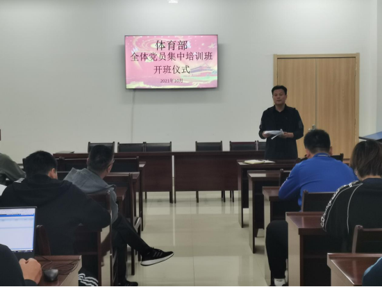 10月15日,体育部党总支在至诚体育场A105会议室,举行《体育部2021年全体党员集中教育培训班》开班仪式。体育部党总支书记、主任邹瑞出席开班仪式并讲话。