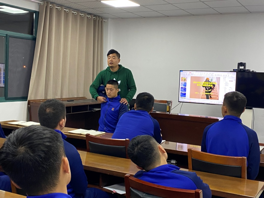 杜鸿老师为全体指战员细致讲解肩部组织构造、肌肉组成、训练前热身、肩部韧带拉伸以及训练后肩关节放松等知识,引导指战员科学训练,提高身体素质。课后,杜老师结合自身多年理论、实践经验,针对训练和救援中受损伤的队员进行康复指导,对受伤的原因进行分析,并进行康复治疗。