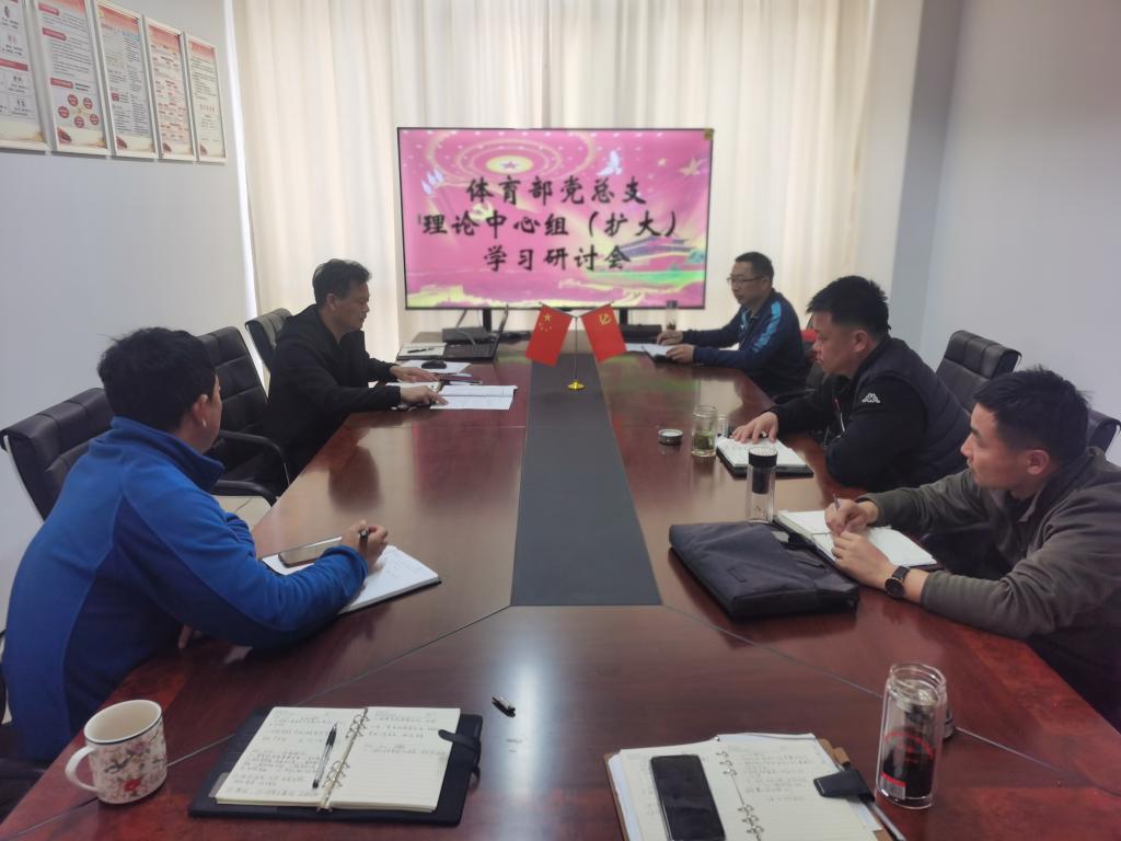 3月11日,体育部党总支在行政楼710会议室召开理论学习中心组(扩大)学习会,学习会由党总支书记邹瑞主持,部党总支理论学习中心组成员、各党支部书记参加学习。