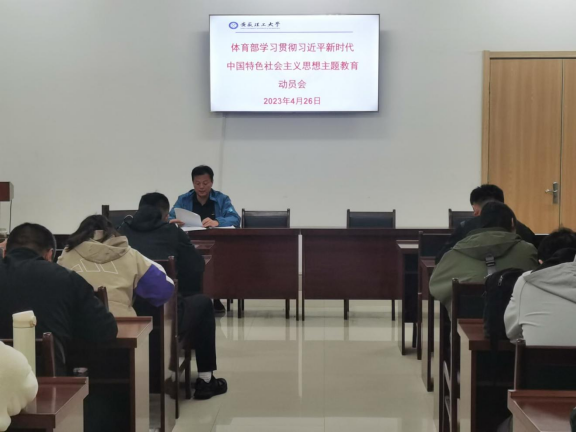 4月26日上午,体育部在至诚体育场A105会议室召开会议,传达学校学习贯彻习近平新时代中国特色社会主义思想主题教育动员大会精神。会议由体育部党总支书记、主任邹瑞主持,全体党员参加会议。
