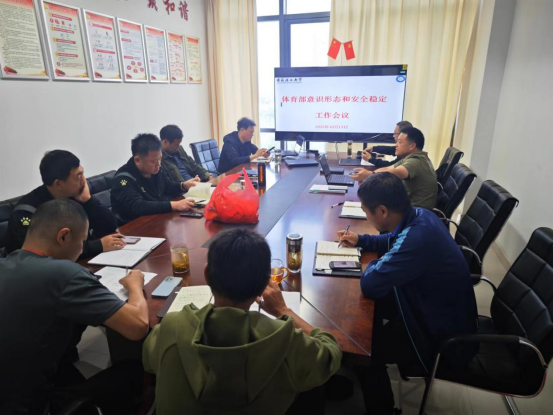10月13日上午,体育部在行政楼710会议室召开意识形态和安全稳定工作会议,体育部党总支委员、各党支部书记、办公室成员参加会议,党总支书记邹瑞主持会议。