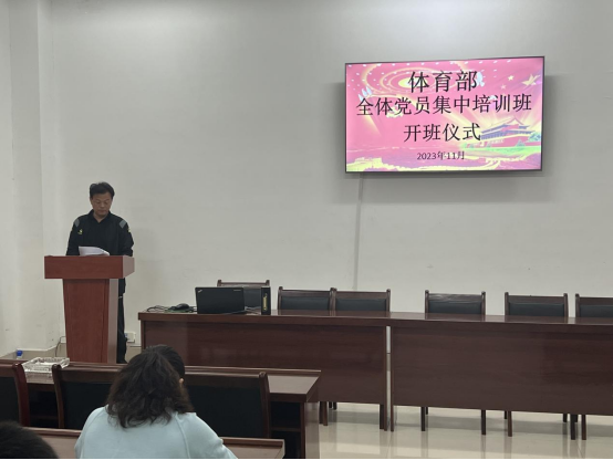 11月3日,体育部党总支在至诚体育场A105会议室,举行《体育部2023年全体党员集中教育培训班》开班仪式。体育部党总支书记、主任邹瑞参加开班式并讲话。