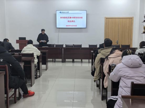 12月19日,体育部党总支在至诚体育场A105会议室举行2025年全体党员集中教育培训班结业典礼。结业典礼由体育部党总支书记邹瑞主持,体育部全体党员参加。