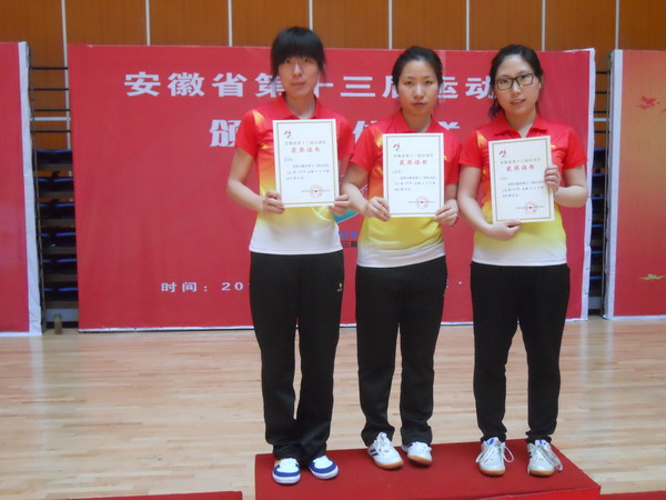 在男子甲组团体赛中,共有24支代表队参赛。我校代表队在小组赛中奋力拼杀,力克劲敌安徽财经大学和合肥工业大学,以小组第一名的成绩挺进八强。并在随后的淘汰赛中,连续战胜中国科学技术大学和安徽师范大学代表队,与蚌埠学院代表队会师决赛。决赛前,队员们精神抖擞、充满自信,赛场上认真贯彻教练员的战术意图,沉着机智、凝心聚力、敢打敢拼,最终战胜蚌埠学院男队,成功登上最高领奖台。女子团体也取得第四名的好成绩。