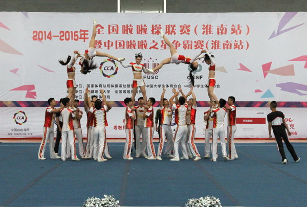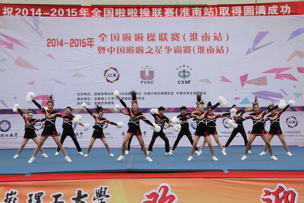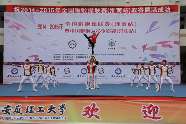 11月8日至9日,由国家体育总局体操运动管理中心、中国大学生体育协会、中国中学生体育协会共同主办,安徽理工大学及全国啦啦操委员会承办的2014-2015年全国啦啦操联赛(淮南站)暨中国啦啦操之星争霸赛(淮南站)在我校正式开赛。本次赛事共有来自安徽和周边省市的60支代表队1186名啦啦操选手参赛,我校获得优异成绩。