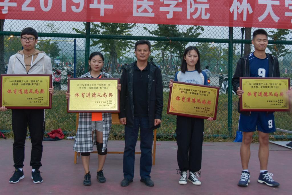 10月11日下午,由体育部主办的2019年校大学生排球赛落下帷幕,医学院党委书记刘群红、体育部副主任邹瑞出席颁奖仪式并向取得优秀成绩的代表队颁发了奖杯和证书。