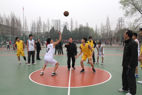 3月22日下午,2013年校“医学杯”大学生篮球联赛在全校师生的期待中正式开幕。副校长刘泽功教授出席开幕式并为本届篮球赛开球。本届比赛为期12天,共有来自13个学院25支队伍近300名运动员参加,将同时在校本部、北区篮球场进行。