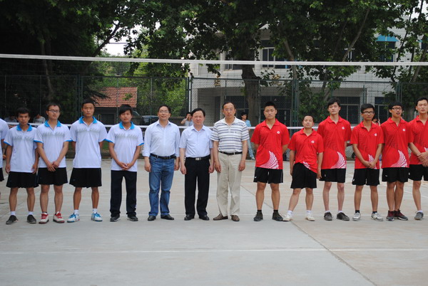 5月20日下午,2013年校“电信学院杯”大学生排球联赛开幕式在校本部排球场隆重举行。副校长刘泽功、电气与信息工程学院书记胡光厚、体育部主任杨斌等出席开幕式并为本届排球赛开球。本次比赛为期9天,共有来自12个学院22支队伍近300名运动员参加。