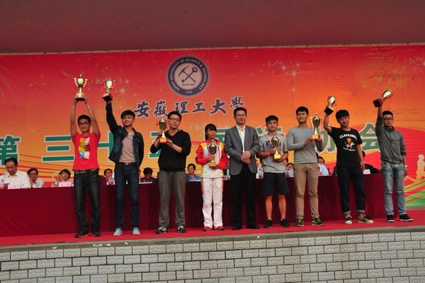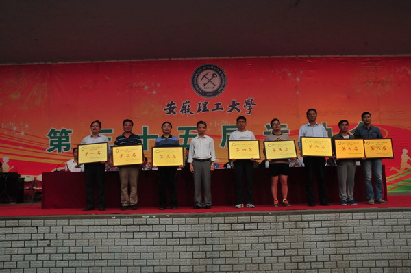 闭幕式上,总裁判长夏冬生宣布了比赛成绩。获得优秀运动员称号的分别是学男组机械工程学院王健,学女组经济与管理学院刘文婷同学;荣获学生组体育道德风尚奖的单位分别是能源学院、计算机学院、理学院、外国语学院、人文学院、测绘学院、化工学院、医学院;荣获教工组体育道德风尚奖的单位分别是测绘学院、计算机学院、土木学院、机关、理学院、外国语学院;荣获学生组团体总分前8名的单位分别是医学院、化工学院、机械学院、材料学院、经管学院、土木学院、电气学院、地环学院;荣获教工组团体总分前8名的单位分别是机关、理学院、外国语学院、电信学院、医学院、后勤集团、机械学院、材料学院;打破校纪录的学生分别是机械学院王健在110米栏比赛中以15″58的成绩打破钱萌同学的16″33校纪录,地环学院李欣芳在100米栏比赛中以18″03的成绩打破周春芳老师18″5的校纪录。